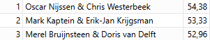 Een OW paar eindigde in 7club icon, een bereikte 7heart icon en eentje 7diamond icon. Slechts één paar mocht 6heart icon gedoubleerd spelen voor de volle 100% en de rest van het veld nam alle contracten van OW uit, dus ook de bieders van 7heart icon werden uitgenomen.