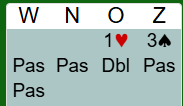Als west in de derde hand met 3 durft te openen, zal noord doubleren. Aan vier tafels pasten de kwestbare zuidspelers daarop en raapten meestal +300 op voor 6 imps winst. Kom je als NZ in 4