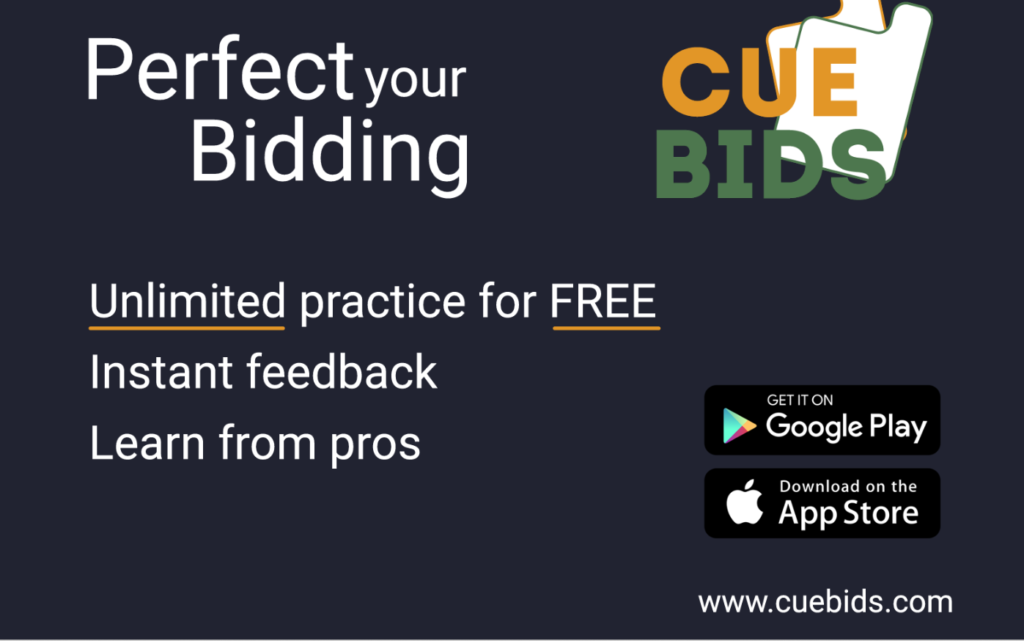 Cue-bids is een geweldige, gratis app om samen met je partner handjes te bieden. Haal hem uit de app. store op je tablet of smartphone. Klik op de afbeelding om naar de website te gaan.