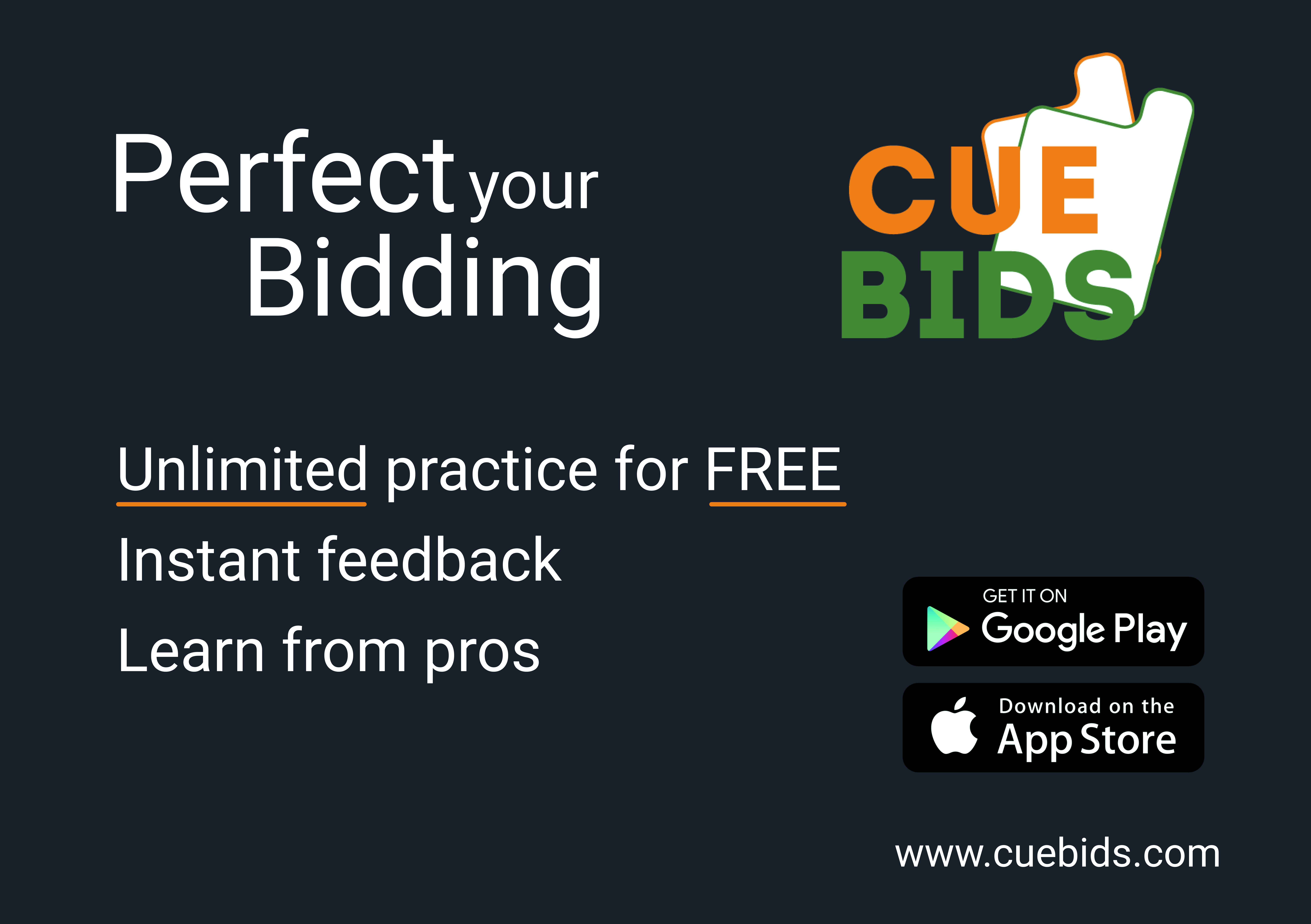 De app Cuebids, een bridge-biedtool, is ontwikkeld door Emanuel Unge van Stockholm Bridge AB. Het is een gespecialiseerde applicatie ontworpen om bridgers te helpen hun biedvaardigheden te oefenen en te verbeteren. Wil jij dus met partner handjes bieden en daarna voor het eindresultaat een beoordeling krijgen? Dan kun je de app. Cuebids het best even downloaden. De uitleg over de score die je per spel krijgt, geeft Emanuel hier.