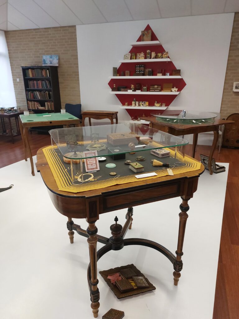 Verderop in het museum bevinden zich nog diverse zalen met bridgeobjecten zoals troefaangevers, speciale bridgetafels (met ruimte voor sigaretten!), spellensets, en nog veel meer. Gids Gerard kent elk object en zijn geschiedenis, en vertelt er graag over.
