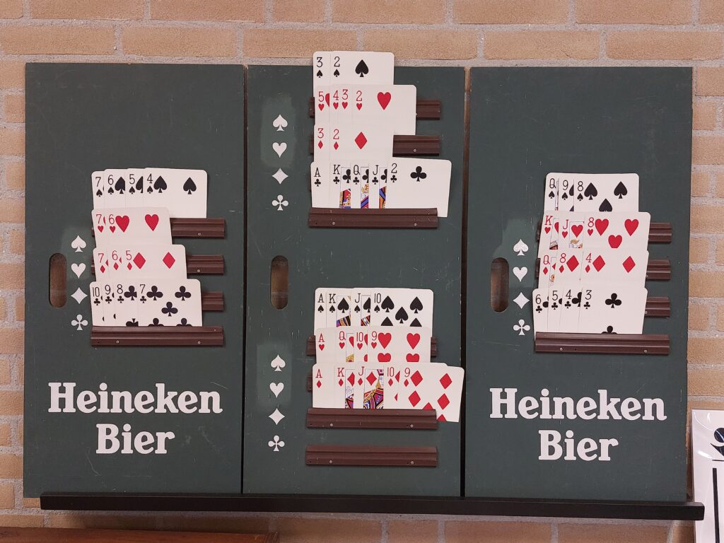 Een paar weken geleden sprak ik Gerard Hilte bij een Transfer Solutions reünie, en hij nodigde me uit om weer eens een kijkje te komen nemen in zijn bridgemuseum. “Zijn”? Ja, want Gerard Hilte is naast een van de oprichters van Transfer Solutions ook de oprichter van het bridgemuseum in Leerdam. Of nauwkeuriger: Museum van het Kaartspel & Bridge Museum, want er is meer te zien dan alleen bridge-objecten. En “weer eens”? Ja, want ik bezocht het museum al eens zo’n 25 jaar geleden. Maar er is sinds die tijd heel veel veranderd. Het belangrijkste: in 2012 verhuisde de collectie van de schuur achter het huis van Gerard in Leerdam naar een prachtig schoolgebouw om de hoek. Het resultaat is dat de collectie nu te zien is in een stuk of zes zalen, met alle benodigde ruimte en licht.
