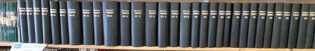 In een van de grootste zalen is de enorme bibliotheek te vinden, met boeken over kaartspelen en bridge, waarvan het oudste boek uit de achttiende eeuw stamt. Ook te zien: volledige jaargangen van de vele bridgetijdschriften die sinds de vorige eeuw werden gepubliceerd. Daar zijn er helaas nog maar een paar van over.