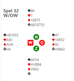Aan een tafel bleef noord zitten en dat contract was niet `just made´ maar ging 4 down voor -1600. Er werden op dit spel zowel in NZ als in OW klavercontracten gespeeld, al dan niet gedoubleerd. Niemand wist echter een contract in klaveren te maken…De uitslag vind je hier.