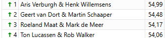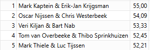 Mark Kaptein en Erik-Jan Krijgsman zijn kampioen paren in de Meesterklasse geworden. Oscar Nijssen en Chris Westerbeek werden tweede. De top 5: