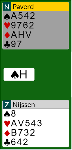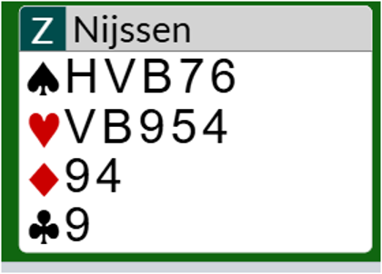 -opening geen enkele kleur natuurlijk geboden) die door mijn gabber Erik van een doublet was voorzien. Werkelijk geen idee. Ik bedacht ze geen 4-4 of 5-3 fit schoppen konden hebben, koos voor
