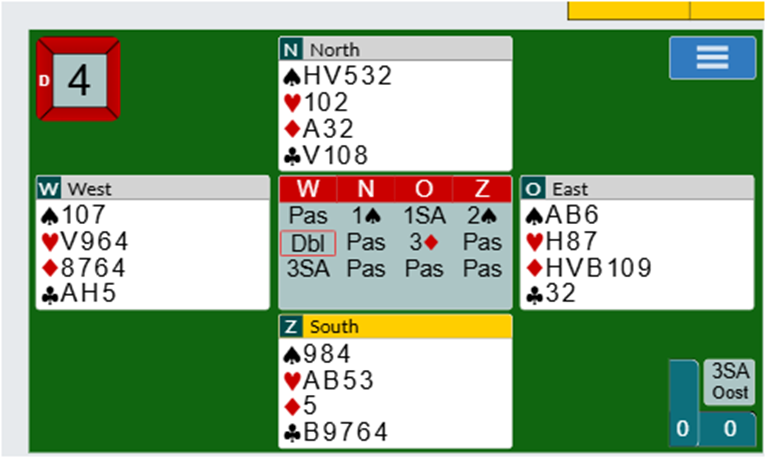 Fourth best from your longest and strongest? Pakt ie een kleine ruiten, foei, en ♦AVxxx bij zijn maat. Ik slijp de messen voor de vierde slotzitting. Laatste rondje als trouwe fan en supporter (geen hooligan) van Nederlandse (voormalige) junioren.