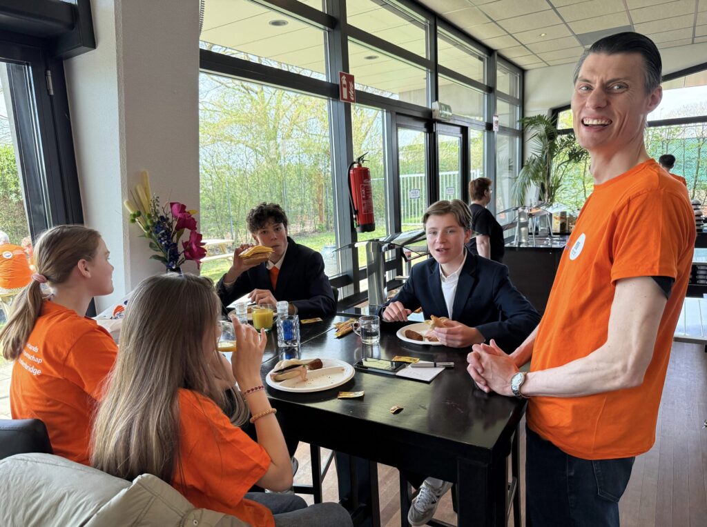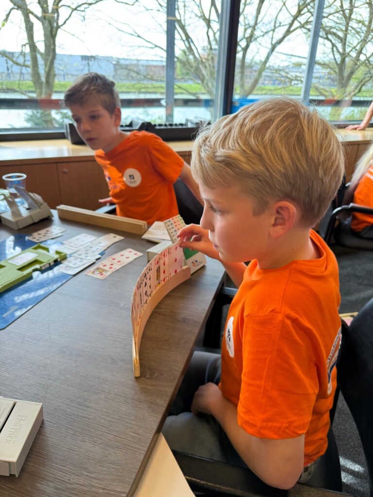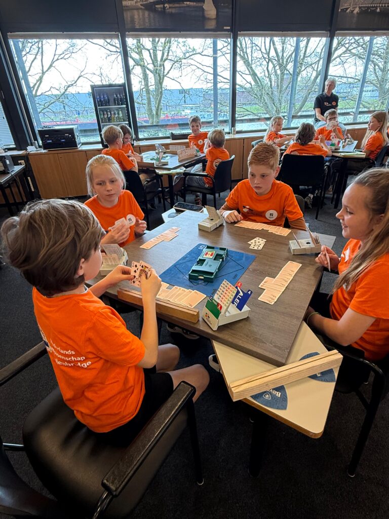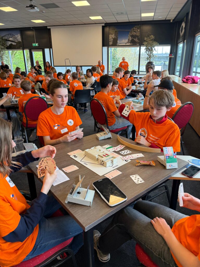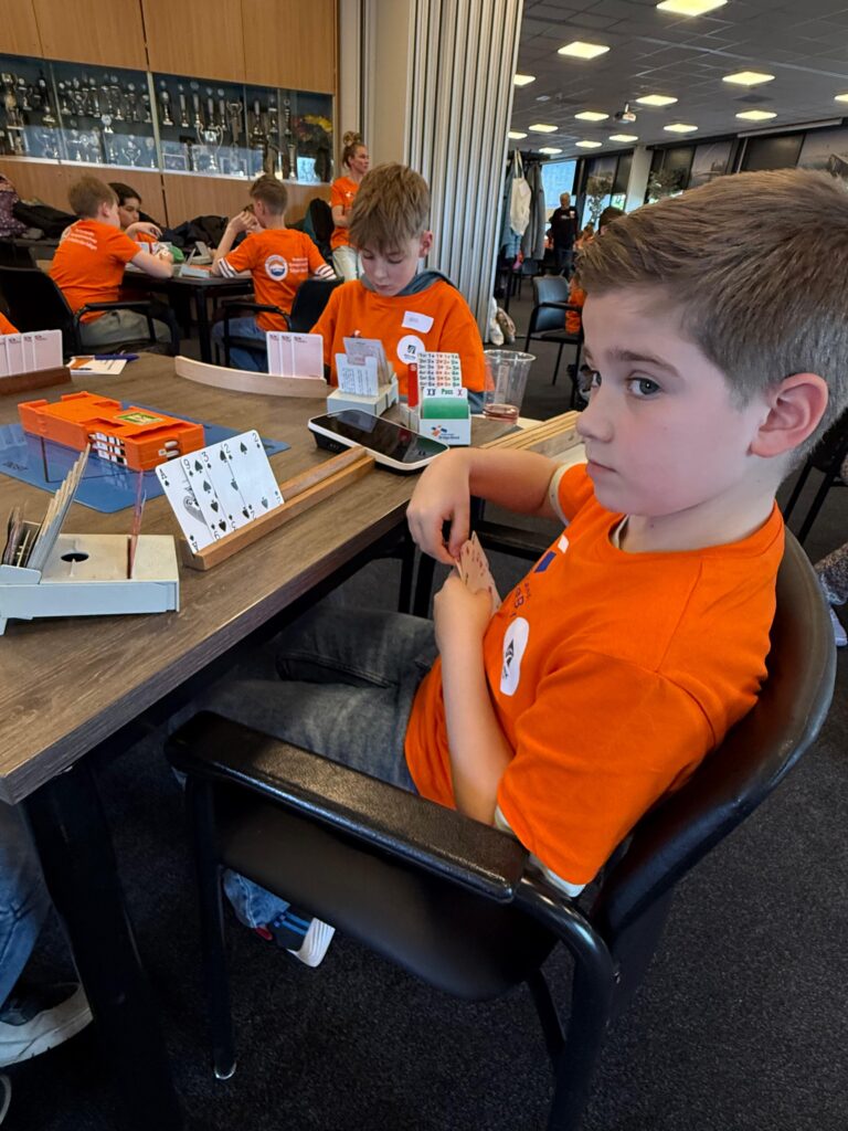 Vooral in de eerste twee categorieën zijn de jonge helden nog onervaren en zijn begrippen als “manche”, “doublet” voor sommigen nog onbekend. Berend van den Bos, lid van team Oranje, was ook met een team uit Zeist gekomen waar hij ze lesgeeft. De term doubleren kenden ze wel, maar dan alleen in de betekenis van zitten blijven. Mmm.