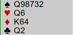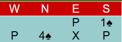2. Er is een oude regel die zegt dat de pas van partner een forcing pas is als wij kwetsbaar de manche hebben geboden. Echter, een 4S bod hoeft al lang niet meer op kracht gebaseerd te zijn, maar zal vaak geboden worden op lengte / distributie, dus is de pas niet forcing. Het lijkt erop dat partner voorlopig niks te melden heeft.