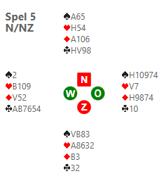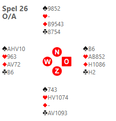 waarvan Zuid vier keer leider was. Of Oost zijn schoppen nou wel of niet geboden heeft, west zal met