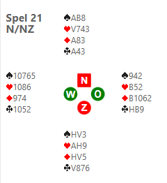 Wanneer je als NZ een sterke SA speelt, zul je waarschijnlijk in 4 terechtkomen, te spelen door Noord. Zes paren zaten in 4