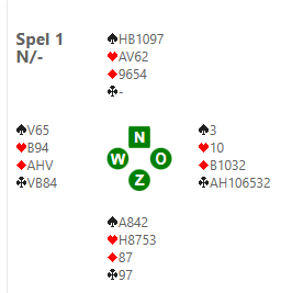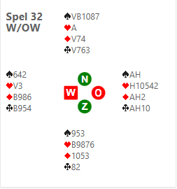 Op dit spel zitten Von Seida-Vis in 4heart icon met de OW kaarten. Zuid kon na een 1spade icon opening van zijn partner niet geloven dat dit contract gehaald kon worden en doubleerde. Alle leiders gingen na een schoppenstart een of twee down, maar de winnaars wisten 10 slagen te maken (vraag mij svp niet hoe). Dat waren nog eens 14 imps erbij. De hele uitslag vind je hier.