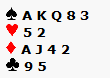 Met H doubleton goed, maak je zelfs 12 slagen. Je krijgt nog 17% voor de moeite.