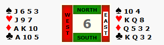 2 (vierde van boven). Als de ruitens en de klaveren 3-3 vallen heb je 9 slagen, maar ook als de boer zich in beide minors in de tweede ronde laat zien, heb je er 9. Een tweede hartenslag ontwikkelen met de schoppenkleur wijd open, lijkt geen goed idee. Hoe ga je spelen?
