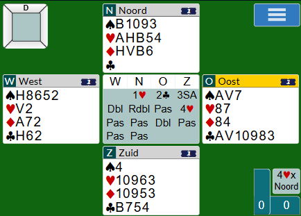 zodat Berend mee kon denken in het verdere bieden. Zuid nam 4