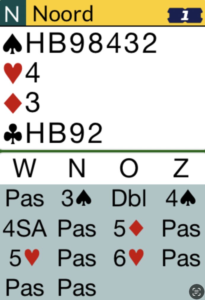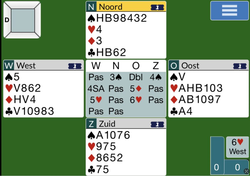 beloofde west een klaveren/ hartenspel. Oost had nog wat over en bood klein slem. Uw start graag.