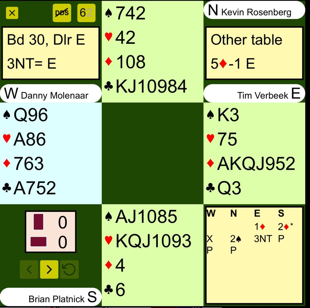 -2). Rosenthal won hierdoor de wedstrijd met 6 imps verschil en is de volgende tegenstander van team Cayne. We gaan het zien.